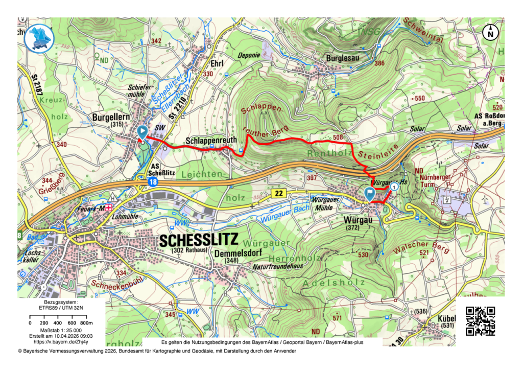 Hinweg über Reisberg & Schlappenreuth ca. 1,5 Std. · Rückweg über Scheßlitz ca. 1 Std.